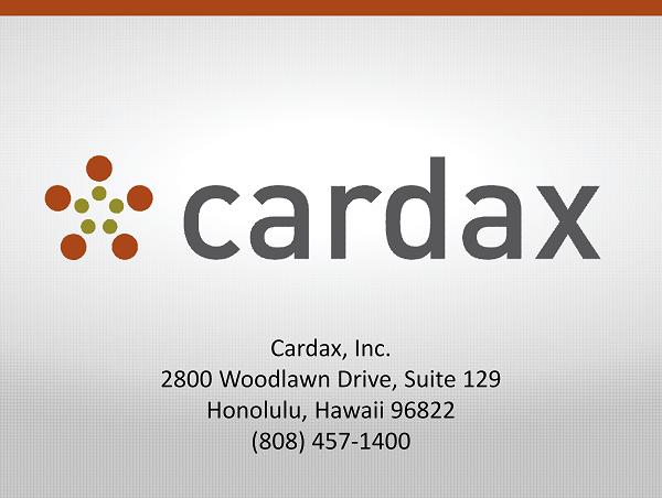 Cardax, Inc. 2800 Woodlawn Drive, Suite 129 Honolulu, Hawaii 96822 (808) 457 - 1400